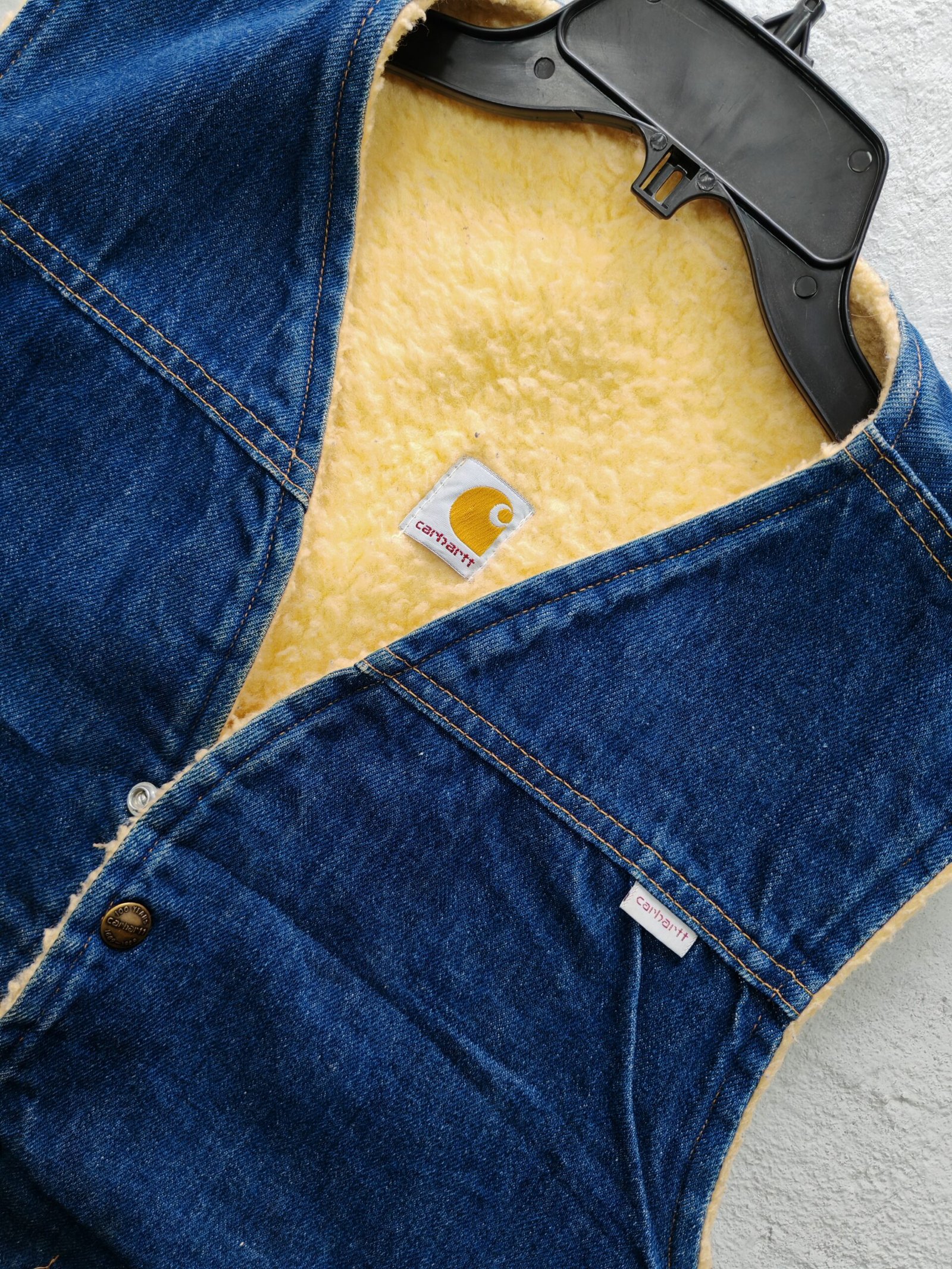 Chaleco Carhartt vintage Carhartt azul oscuro con forro de sherpa, fabricado por Union para hombre, años 80s