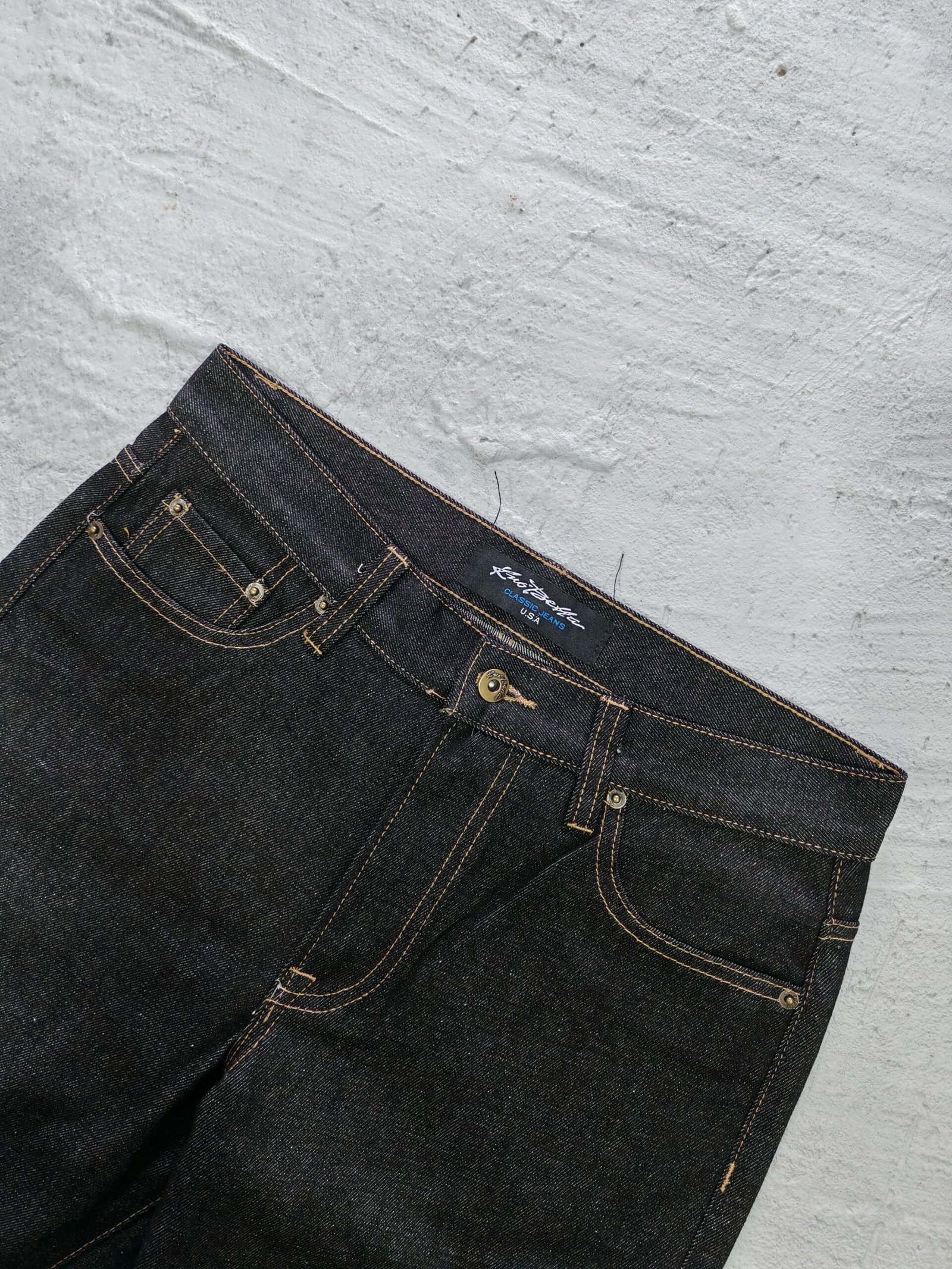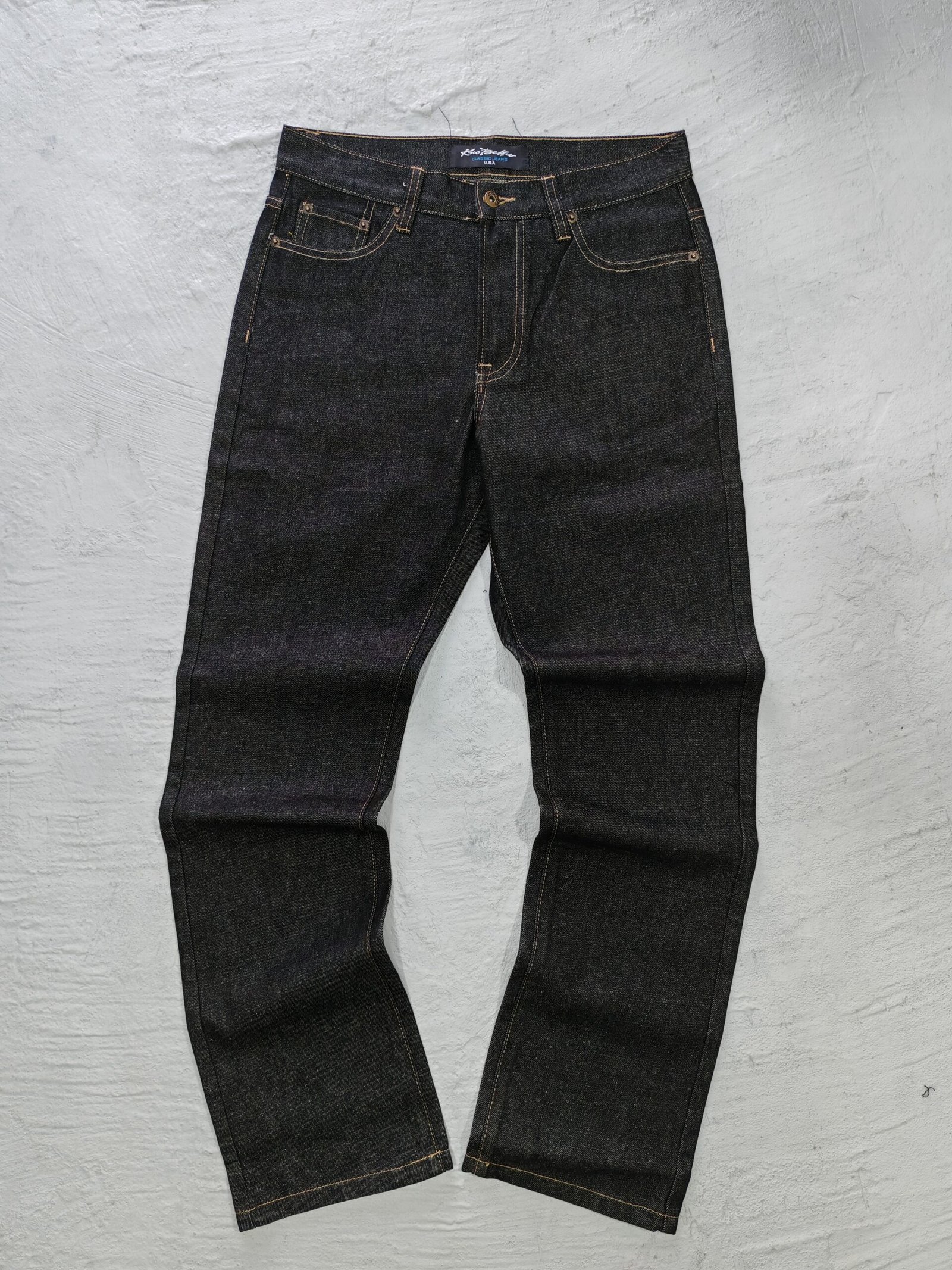 pantalon demin vintage, sin detalles, totalmente nuevo, no tiene degsaste en ruedos o cintura. un corte recto en talla 32×30 sin detalles en un demin negro