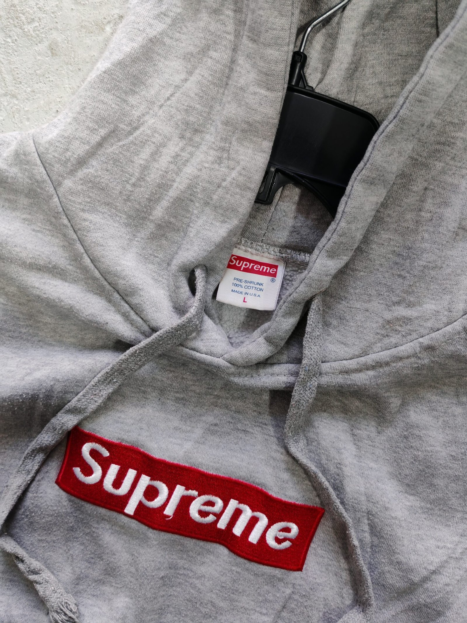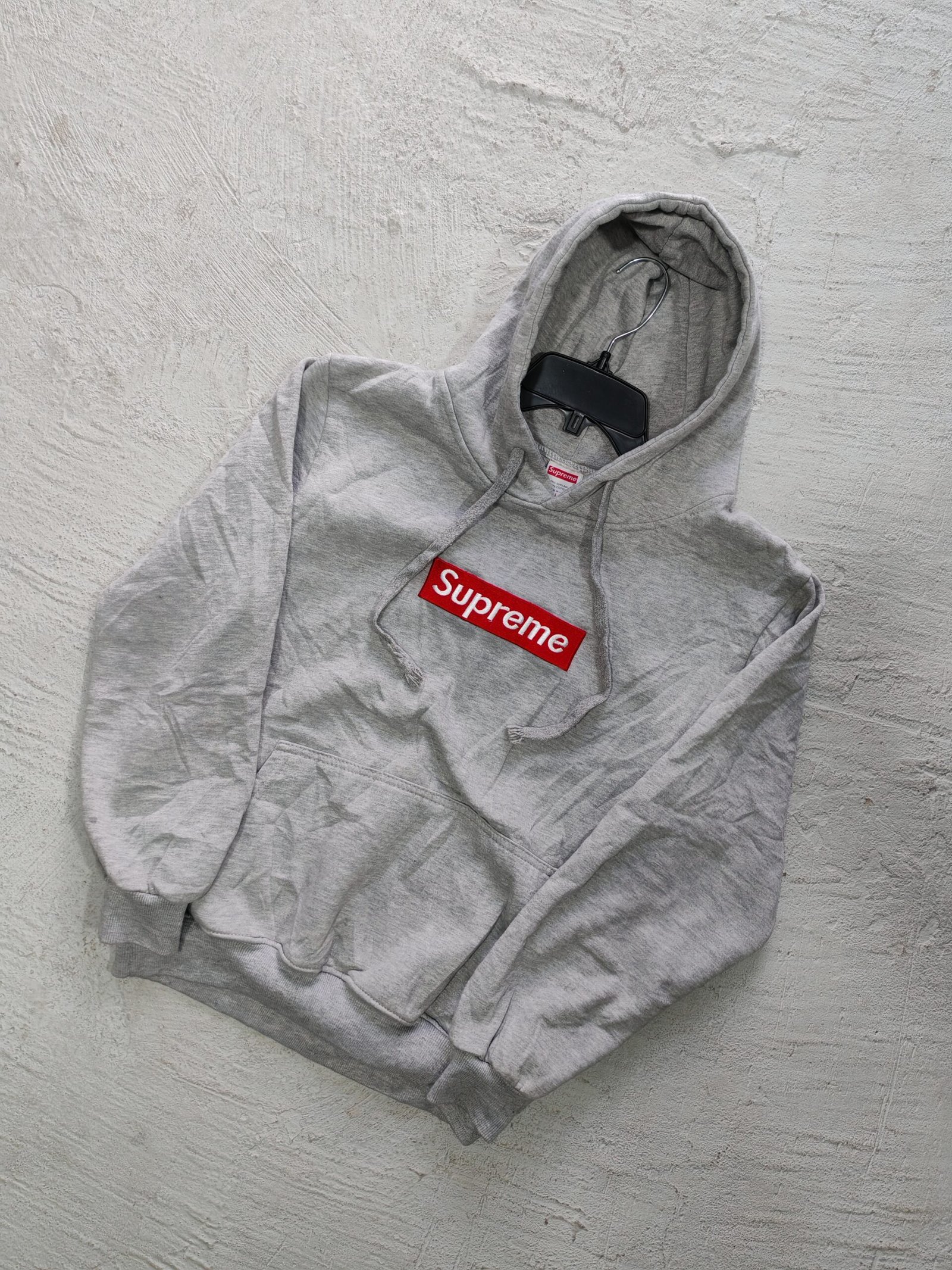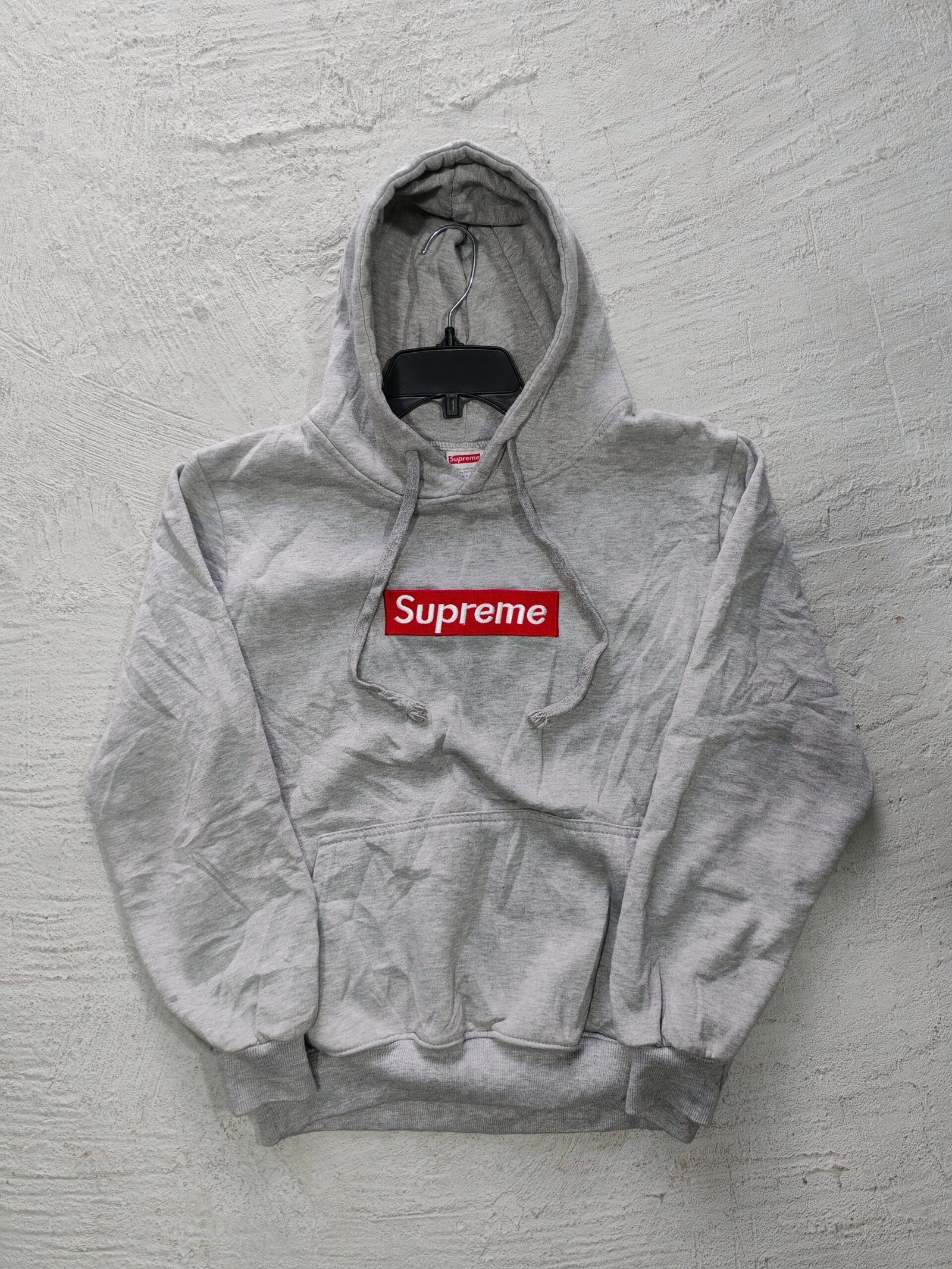 hoodie big logo supreme (replic) sin detalles en logos o tags, en un tono gris con capucha ajustable Talla S