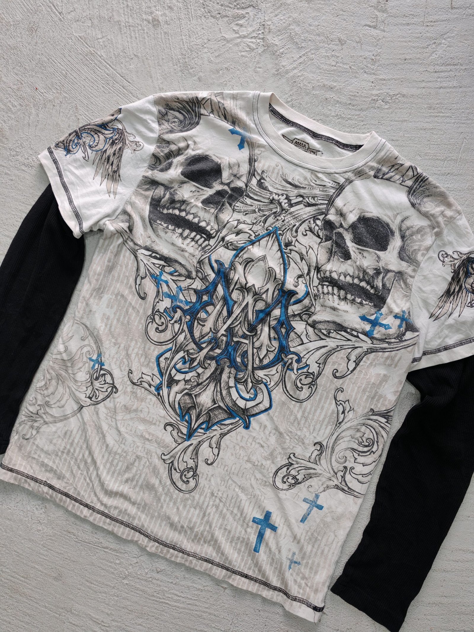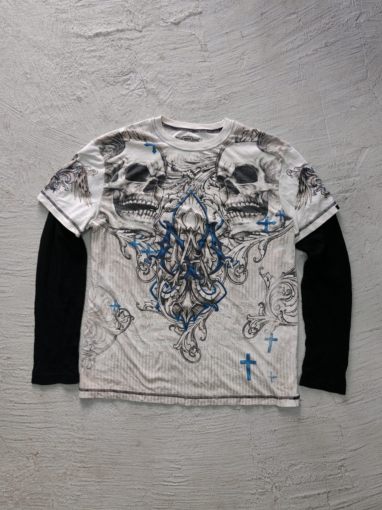 una playera doble manga MMA elite, con estampado en la parte delantera, tags en buen estado talla L